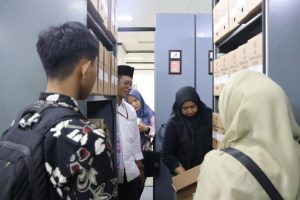 Setelah sesi diskusi, rombongan UIN meninjau depo arsip UGM bersama Ully Isnaeni Effendi. Melalui kunjungan ini, peserta melihat langsung standar penyimpanan arsip, sistem pengawasan, serta pengaturan ruang yang diterapkan UGM dalam menjaga arsip yang dimiliki.
